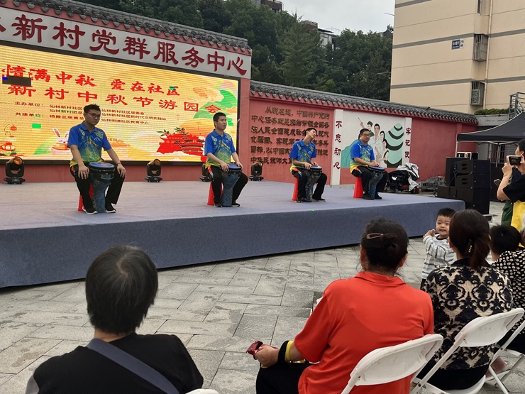 活动现场,激昂奔放的手鼓表演将节日气氛推向了高潮。节奏明快的鼓点瞬间点燃了全场,居民们纷纷驻足欣赏,不少人在鼓点的感染下随之律动,现场化作一片欢乐的海洋。精彩的表演不仅展现了社区居民的多才多艺,更传递出大家积极向上的精神风貌和对美好生活的热爱。