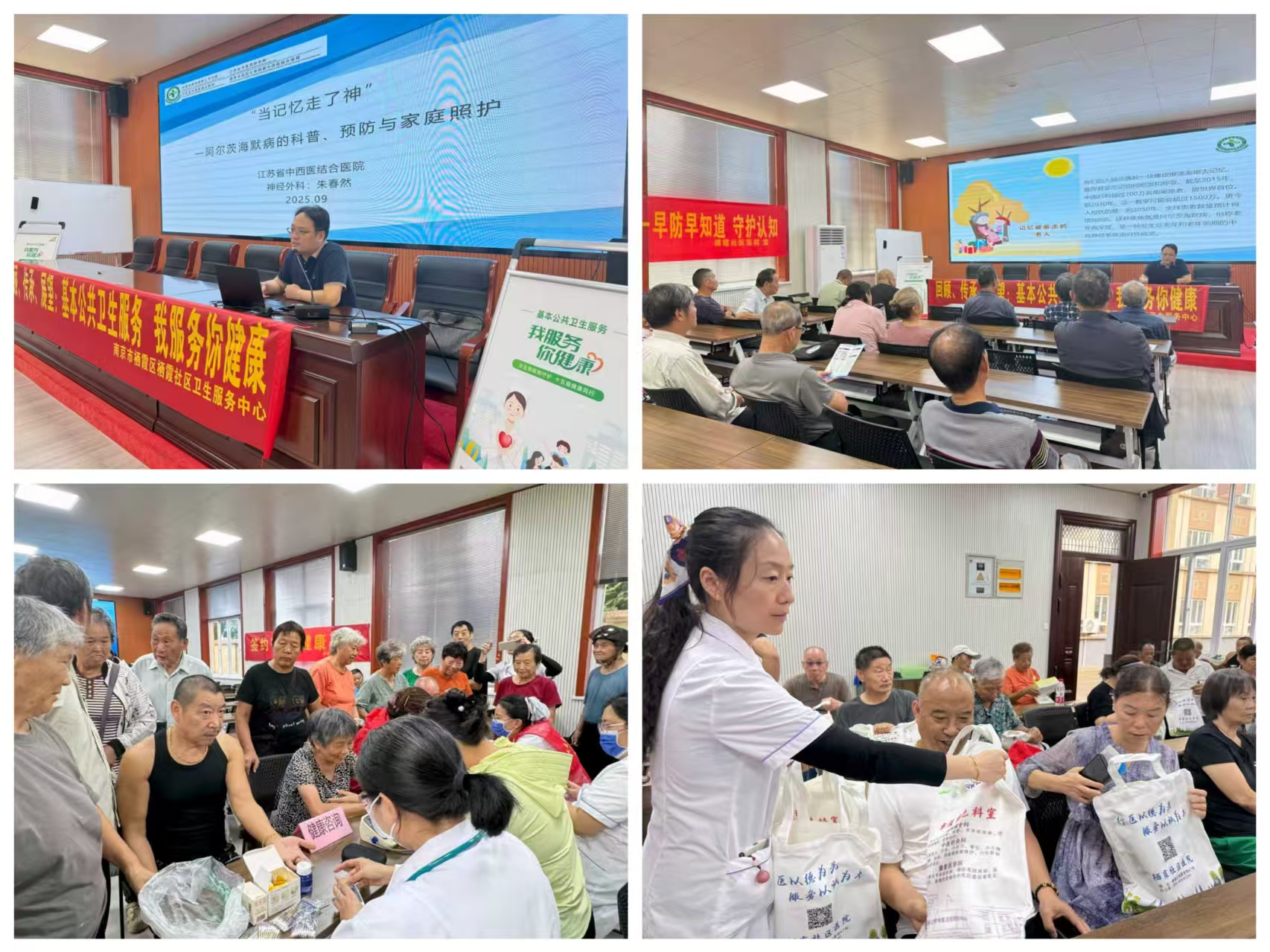 9月19日下午,江南厂社区居民学校携手共建单位栖霞社区卫生服务中心,特邀江苏省中西医结合医院朱春然医师,为居民带来一场“‘当记忆走了神’——阿尔茨海默病的科普、预防和家庭照护”科普讲座。本次活动通过专业讲解、现场义诊和健康宣传相结合的方式,为社区居民带来了一场实用且温暖的健康关爱活动。