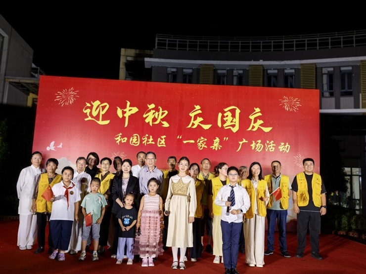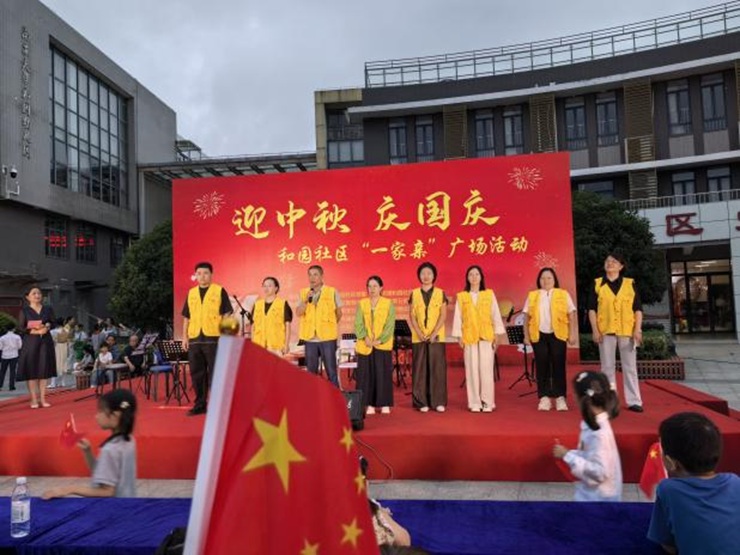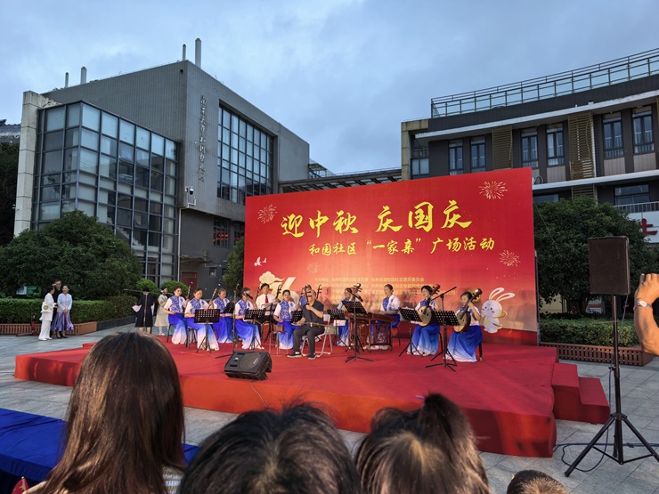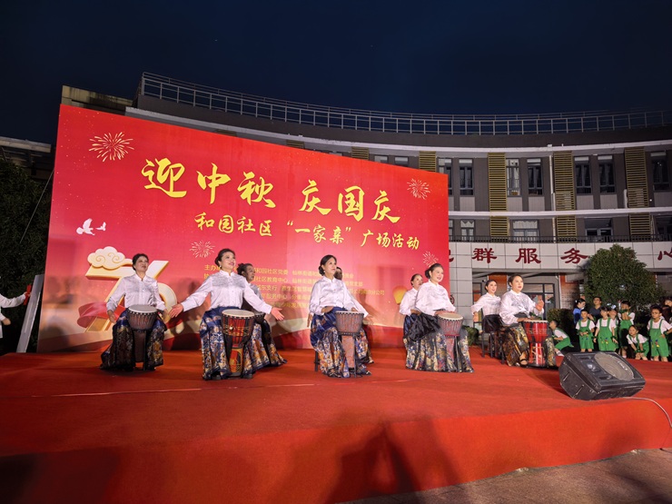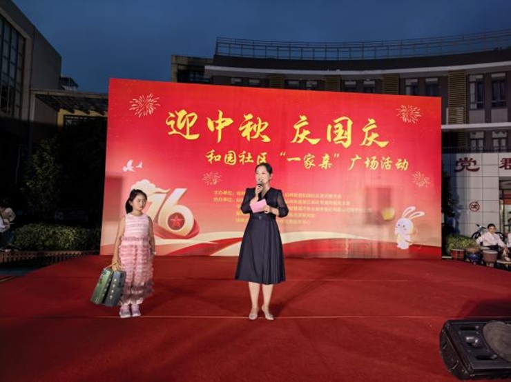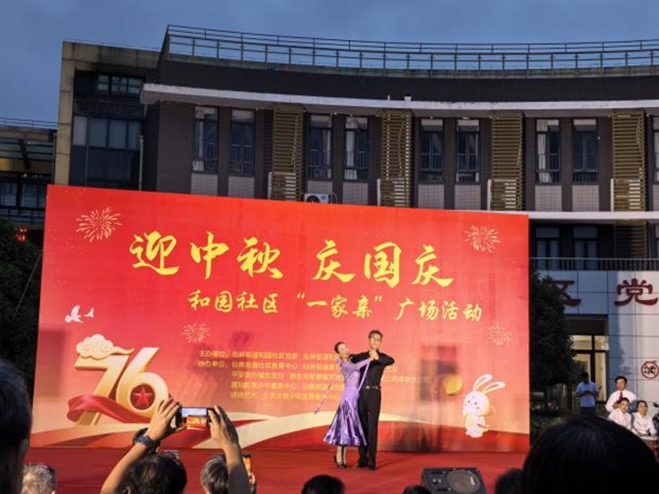 秋高气爽,丹桂飘香。为庆祝中华人民共和国成立76周年,同时喜迎中秋佳节,丰富社区居民的精神文化生活,营造欢乐祥和、文明和谐的节日氛围,2025年9月26日下午17点半,仙林街道社区教育中心携手和园社区在社区党群服务中心广场隆重举办了“迎中秋,庆国庆”主题文艺汇演活动。