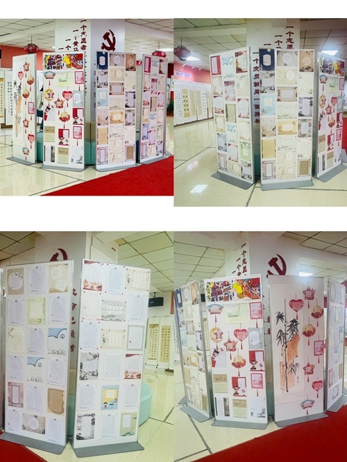 硬笔书法展区虽无软笔的墨色晕染,却以简洁有力的线条传递温暖。青少年是硬笔创作的主力军,共提交98幅作品,内容涵盖经典诗词与节日祝福。小朋友的硬笔《静夜思》笔画工整,稚嫩笔迹勾勒出对中秋月色的想象;还有学生书写“华夏腾飞”“山河无恙”等短句,字里行间满是新生代的家国情怀,笔尖下的每一个字符,都承载着对社区团圆、祖国安康的美好期盼。