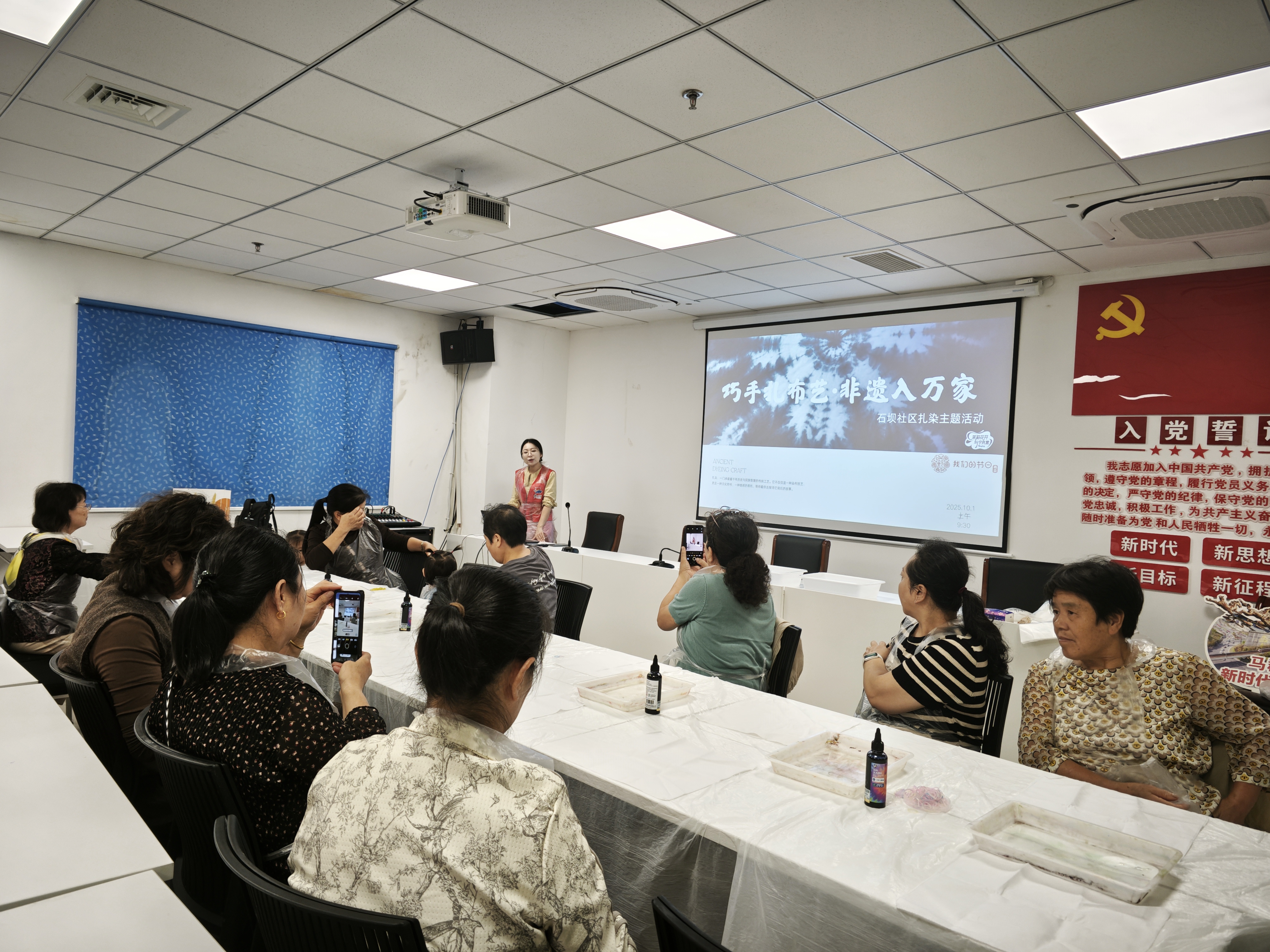 为了传承和弘扬中华优秀传统文化,让非物质文化遗产走进百姓生活,10月17日上午,石坝社区开展了“巧手扎布艺,非遗入万家”扎染主题活动。
