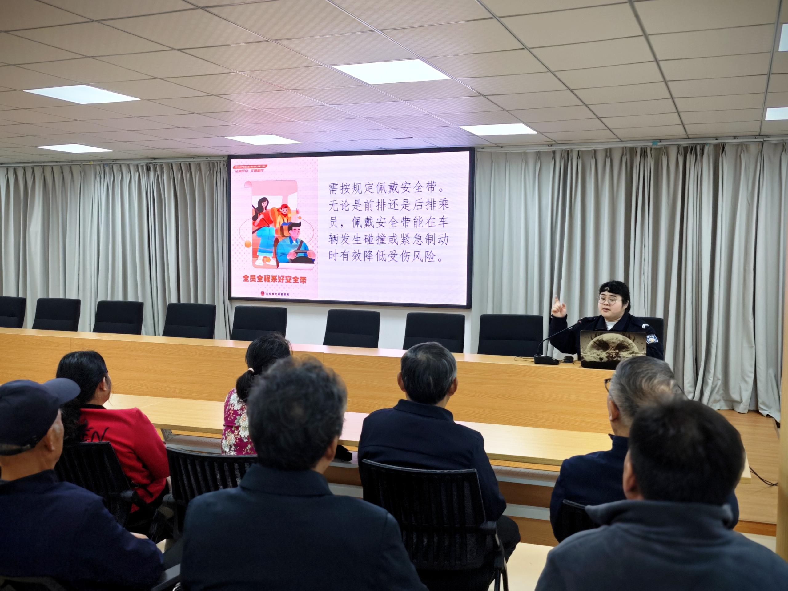 活动伊始,一场由南京交警栖霞区大队资深警官杨持主讲的交通安全讲座,便牢牢吸引了在场所有居民的目光。杨警官结合尧化门片区及尧安新村周边的实际交通状况,通过精心制作的课件,以案说法,深入浅出地讲解了日常出行中需特别注意的安全事项。内容涵盖非机动车骑行规范、行人过马路注意事项以及常见交通违法行为的危害等。一帧帧触目惊心的警示画面,一个个发生在身边的真实案例,让居民们深刻认识到遵守交通规则并非刻板教条,而是对自身和他人生命的负责。在互动环节,居民们踊跃提问,就日常遇到的交通困惑与警官进行了深入交流。警官们耐心细致的解答,为每一位居民的平安出行筑起了一道坚实的“防护墙”。