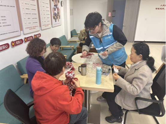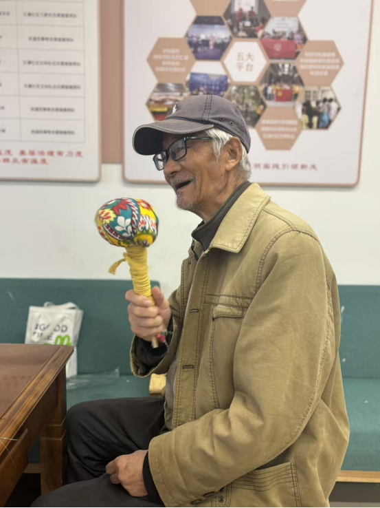 活动中,老年人积极参与、自己动手,更有手法娴熟的阿姨很快便制作完成了自己的作品,转头便承担起助教的角色。在相互帮助、相互学习后,每个人都成功制作了独一无二的艾草锤,大家迫不及待地适用着自己亲手制作的艾草锤,脸上洋溢着笑容,言语中带着满足感和成就感。