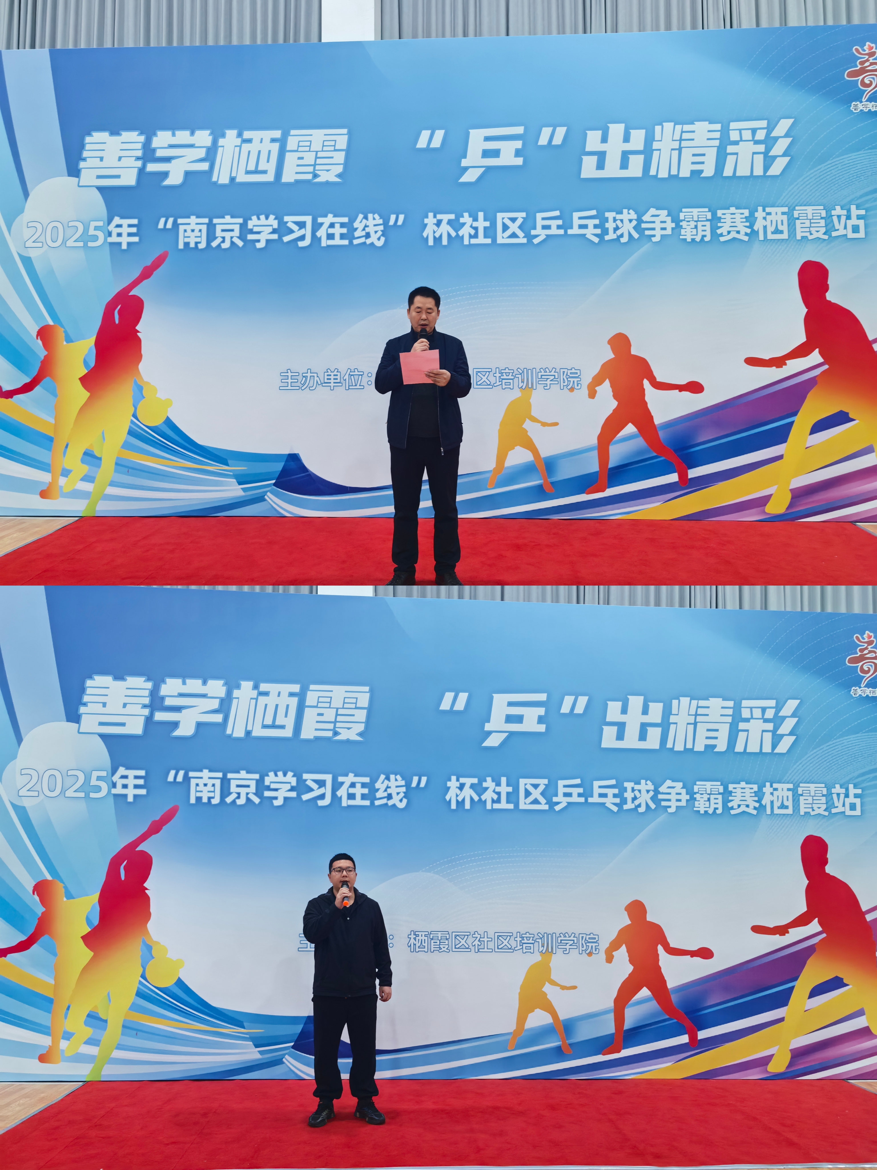 比赛开始前,举行了简短的开幕式。栖霞开放大学校长吉立秋在致辞中表示,乒乓球运动不仅能强健体魄,更能凝聚邻里情感。他鼓励选手们在切磋技艺的同时,更要发扬“以赛会友”的精神,展现栖霞居民积极向上的风采。随后,裁判长郑重宣读了比赛规则,重点强调了公平竞赛原则与赛场纪律,为比赛的顺利进行奠定了规范基础。