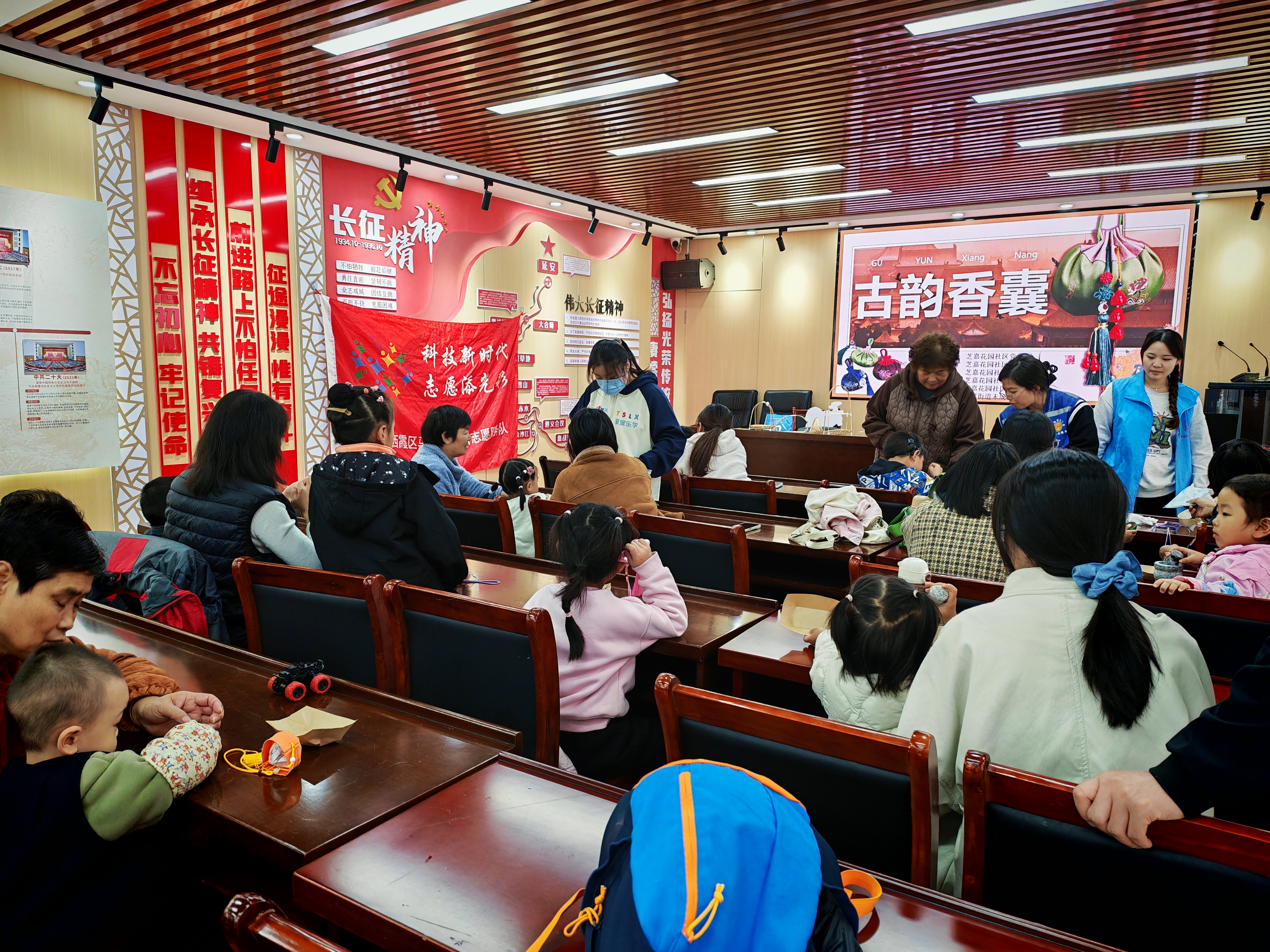 为了丰富辖区内居民的业余生活,传承中华优秀传统文化,11月9日下午,芝嘉花园社区居民学校精心策划了古韵香囊手工制作活动。辖区内30余组家庭齐聚社区活动中心,在一针一线间感受传统手工艺的魅力,共度欢乐亲子时光。