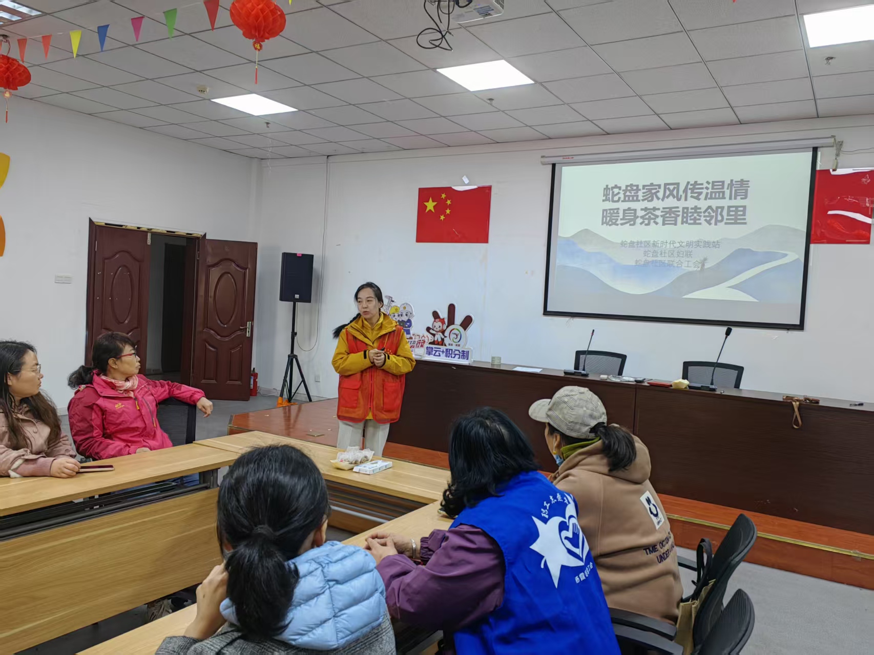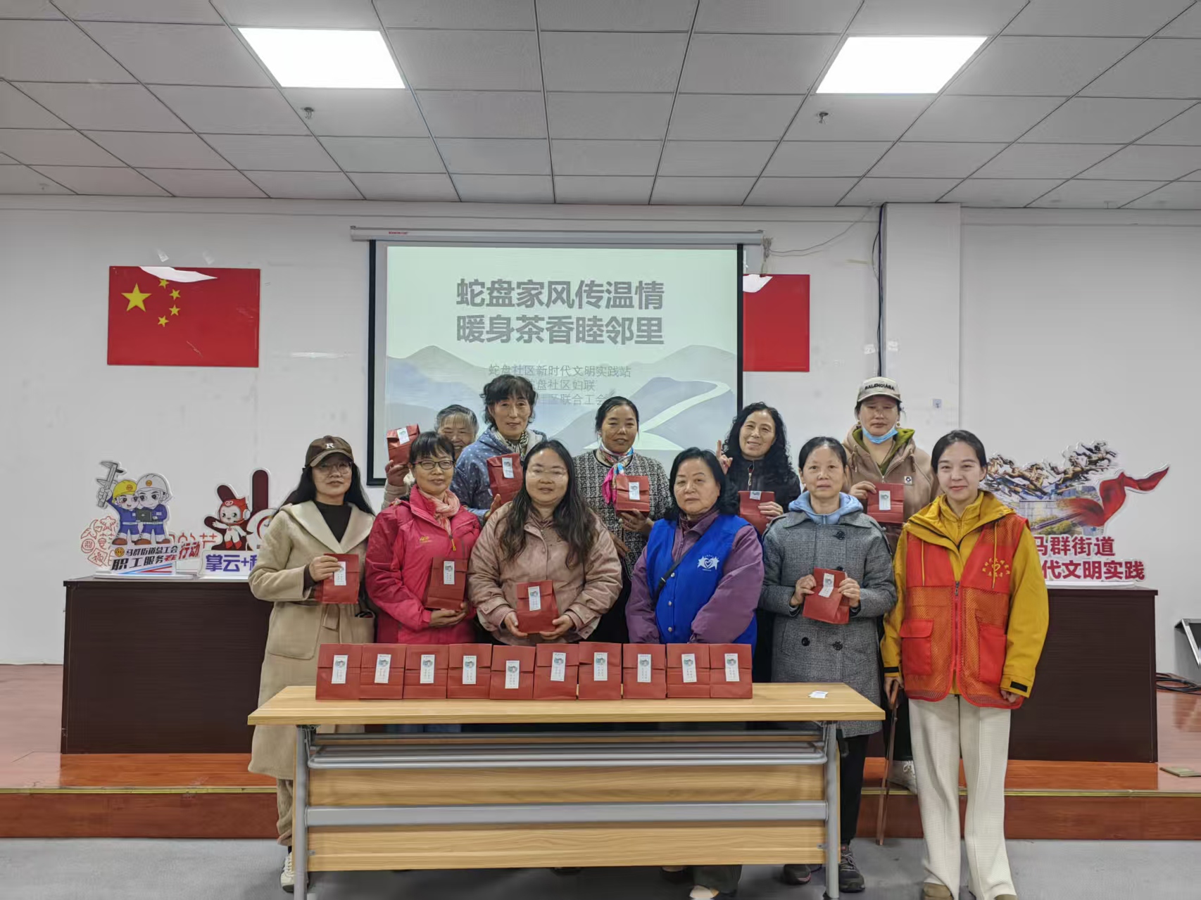 11月20日上午,马群街道蛇盘社区成功举办了以“蛇盘家风传温情,暖身茶香睦邻里”为主题的家风传承与暖心行动活动。本次活动旨在通过讲述家风故事、制作暖身茶、设计文化包装及定向赠予等环节,弘扬传统美德,传递社区温情。