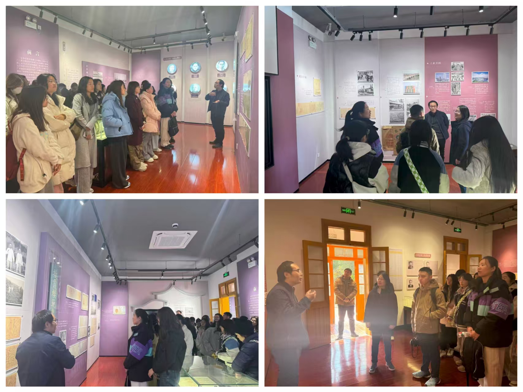 最后一行人来到小黄楼 "风雨如磐忆江南" 档案史料馆。作为南京市文物保护单位,小黄楼始建于1935年,曾是江南水泥厂办公中心,在南京大屠杀期间见证了数万难民的庇护历程,承载着不屈不挠的民族精神。馆内通过珍贵的影像资料、实物展品与情景复原,生动再现了民族实业家与侵略者斗智斗勇的历史场景,以及江南水泥厂从民族工业摇篮到社区文化地标的转型历程。师生们认真聆听讲解,不时驻足凝视,在历史与现实的交织中深化了对基层文化传承的理解。