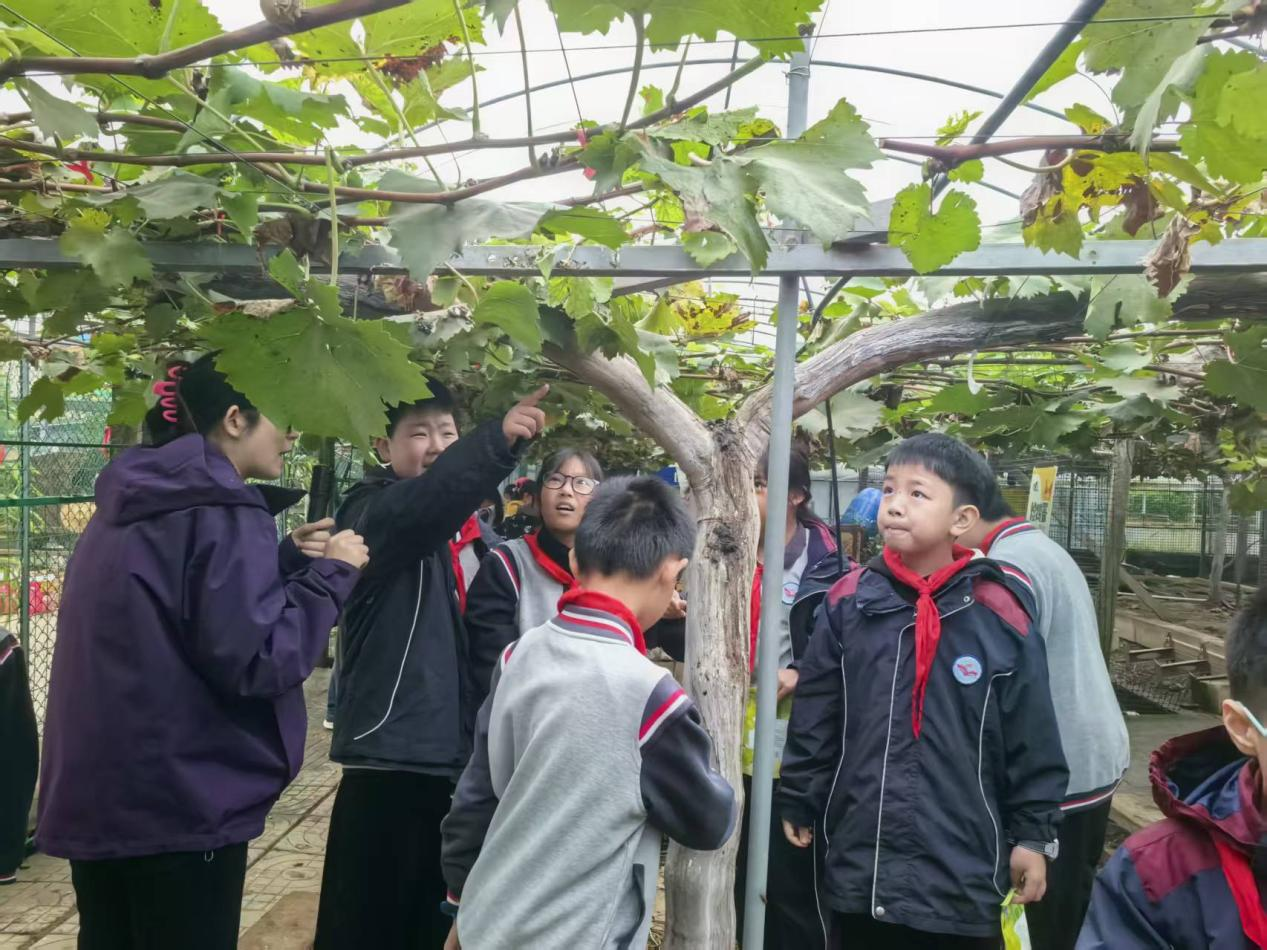 志愿者介绍,这是雾化喷灌系统,它能均匀地为葡萄补充水分,还能在炎热季节调节园内小气候。从悬空草莓的“精准滴灌”到落地葡萄的“气候调节”,两种不同的灌溉方式,根据作物的需求精准施策,让孩子们直观地理解了何为“因地制宜”的智慧农业。