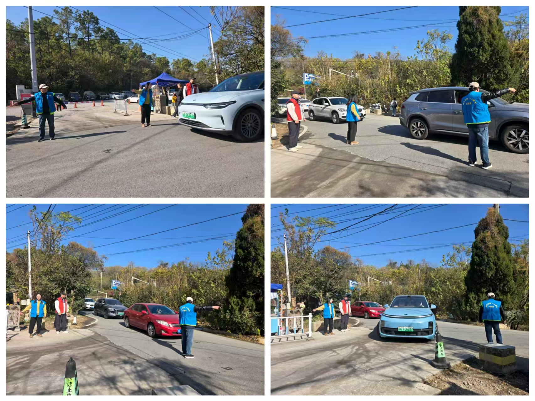 12月7日清晨8时,城市治理志愿者们已身着统一马甲,在景区南门停车场入口处集合。针对红枫节期间游客集中、车流量大的特点,志愿者们采取“定点值守 + 流动巡查”双线作战模式:在停车场入口处设置引导岗,通过手势指引、语音提示等方式,引导车辆快速有序进入停车场;同时组成机动小组,对周边道路进行动态巡查,及时劝离违停车辆,疏导拥堵路段。“请您往这边开,停车场内还有空位。”志愿者李师傅一边挥动手臂,一边耐心为游客指路。他表示,部分游客因不熟悉路线易在入口处滞留,志愿者通过提前分流有效缩短了车辆排队时间。