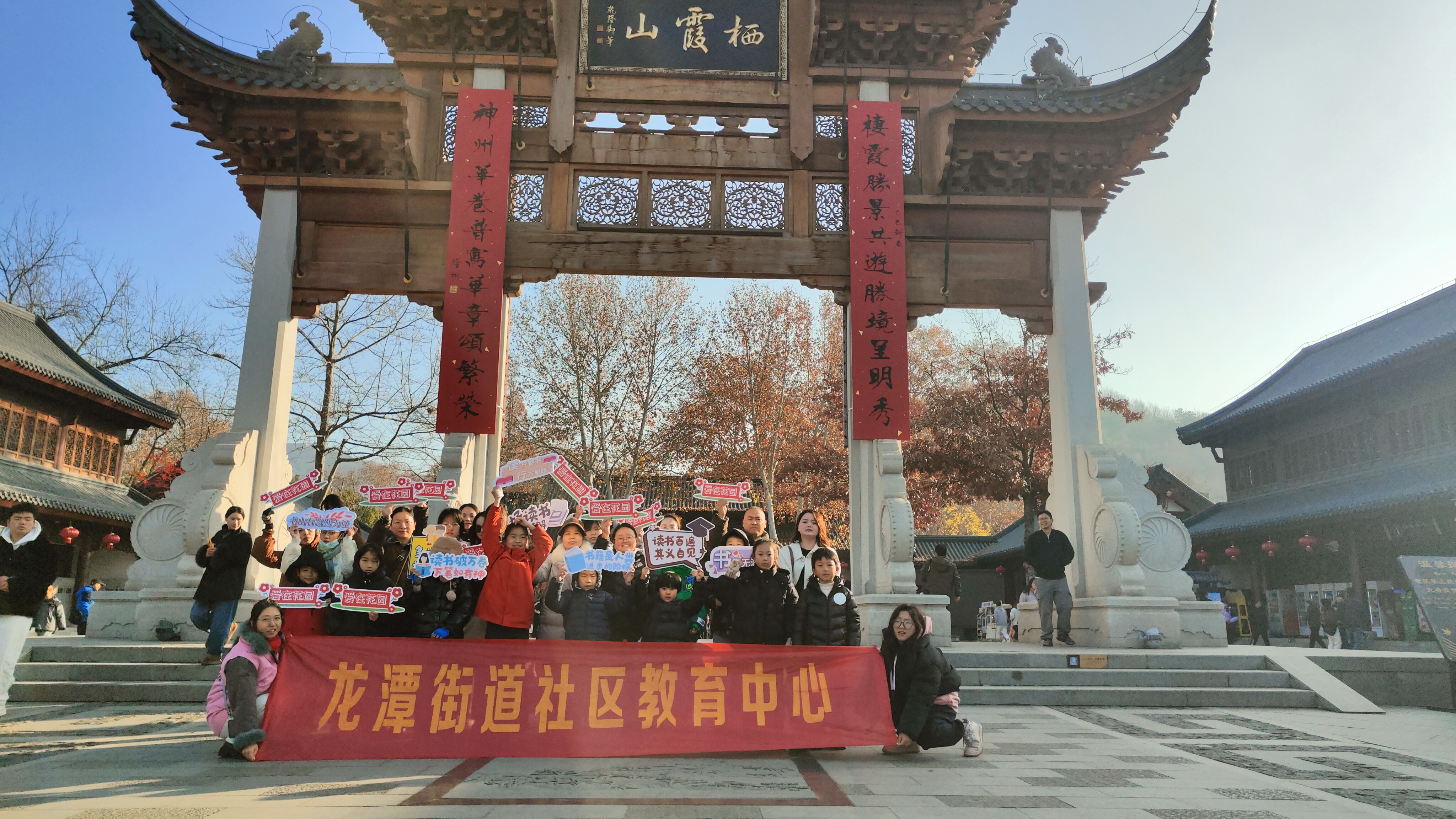 为倡导全民阅读,共建书香社区,2025年12月14日上午,由龙潭街道花园村“书香伴我行,乐攀栖霞山”亲子登山活动在栖霞山风景区顺利开展。十余组社区家庭齐聚于此,以一场别开生面的山林阅读打卡之旅,度过了一个充满知识与趣味的周末。