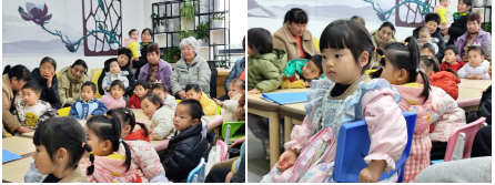 作为系列活动的第三场,本场活动在形式上更注重幼儿的参与感与互动性。活动伊始,曹校长带领孩子们齐声诵读经典古诗《咏鹅》《静夜思》,稚嫩的童声此起彼伏;随后的《数字歌》律动及动物叫声儿歌环节,孩子们兴奋地举起小手参与互动,踊跃举手模仿小动物的叫声,现场瞬间变成充满童趣的“动物乐园”。