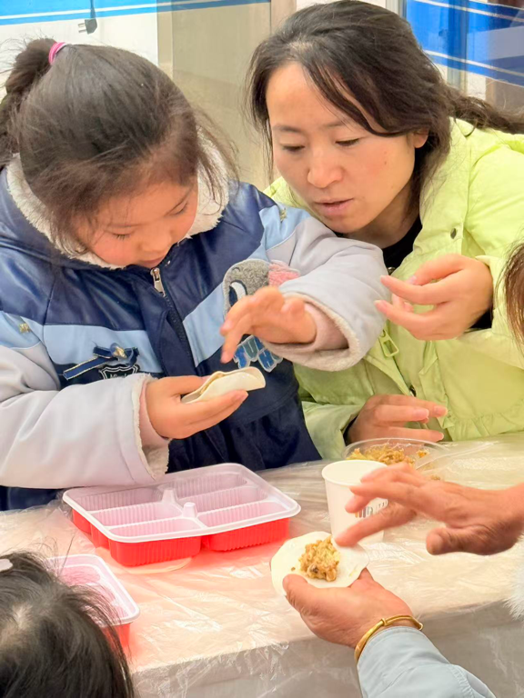 活动现场暖意融融,社区“益家人”志愿者早早备好饺子皮、馅料、擀面杖等食材和工具。活动伊始,志愿者们化身“指导老师”,耐心地向孩子们讲解冬至的由来和包饺子的习俗,手把手教孩子们擀皮、填馅、捏褶。家长们则在一旁协助,有的帮孩子调整饺子形状,有的和孩子比拼包饺子速度,欢声笑语此起彼伏。
