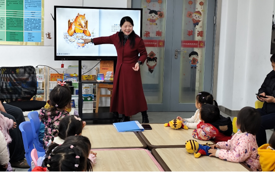 有了前面三期的活动铺垫,孩子们已经适应了学习场景,跟老师更加亲近,能热情互动,现场氛围也更加轻松活泼。在熟练巩固《数字歌》“一二三,爬上山……”的基础上,萌娃们兴致勃勃地跟着曹校长学习“一二三四五,上山找老虎……”的新儿歌,稚嫩的声音和纯真的笑容点燃了欢乐的气氛。