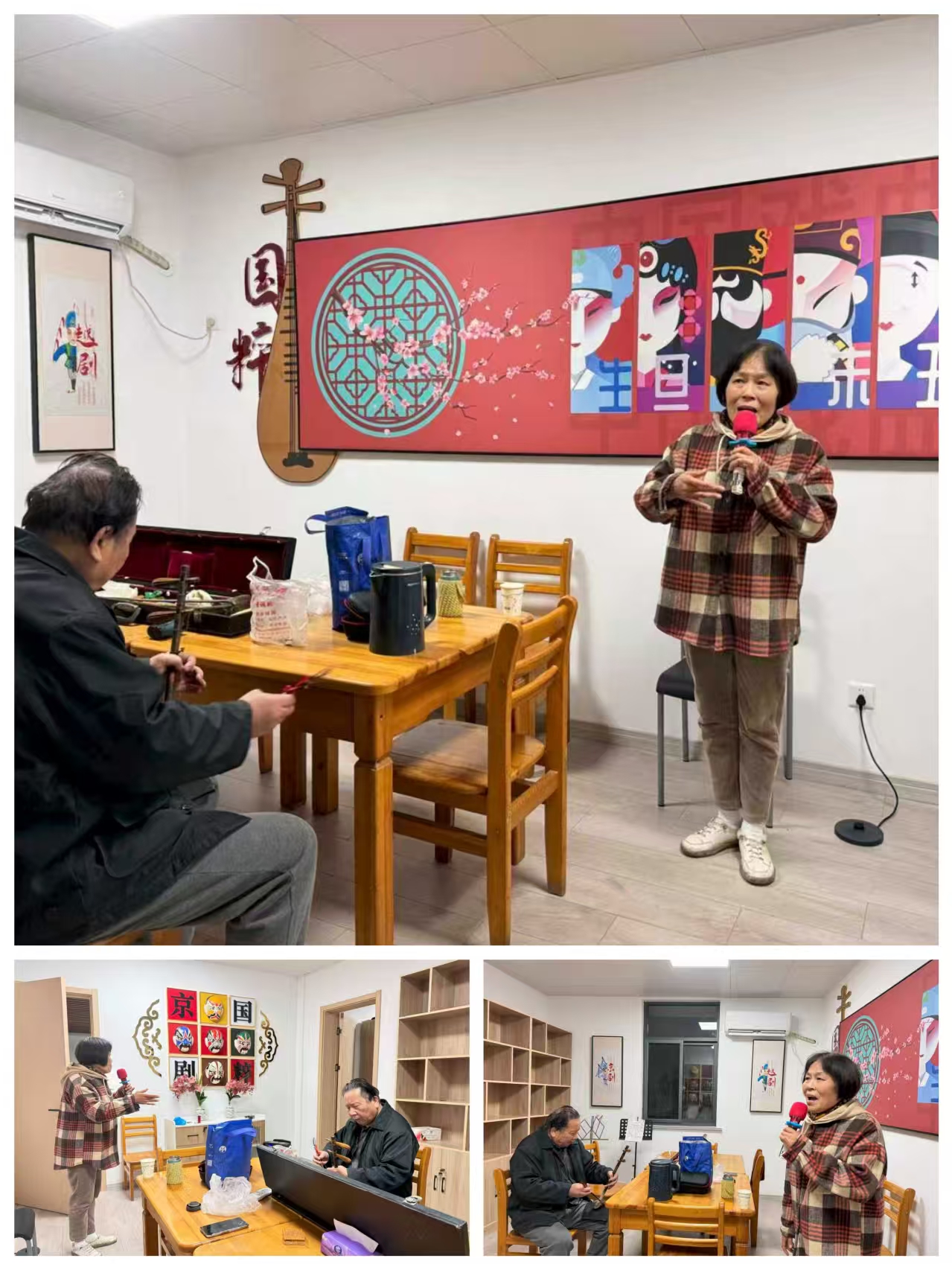作为江南水泥厂职工家属区,该社区历史文化沉淀厚重,许多老一辈居民都热爱传统戏曲艺术,既有年过七旬的老票友,也有刚退休的新学员。在蒋婷珍和葛文炳夫妻俩的指导下,大家策划曲目、组织排练,每个人都成为文化传承的主角。社区戏曲工作室不仅配备专业音响设备,还定期邀请专业剧团老师开展线上指导,在中秋节、重阳节等节点为老年居民们唱奏表演,实现了从“独乐乐”到“众乐乐”的转变,居民社区治理参与感大大提升。