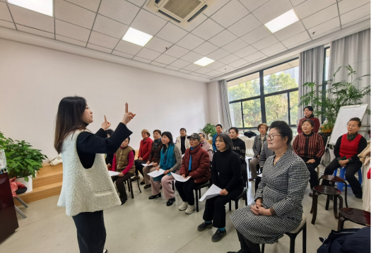 1月13日上午,仙林街道社区教育中心在街道党群服务中心开展 “金声岁月”公益朗诵课,20多位老年居民踊跃报名参加,在经典诗文与声音练习中感受语言魅力,唤醒美好回忆。