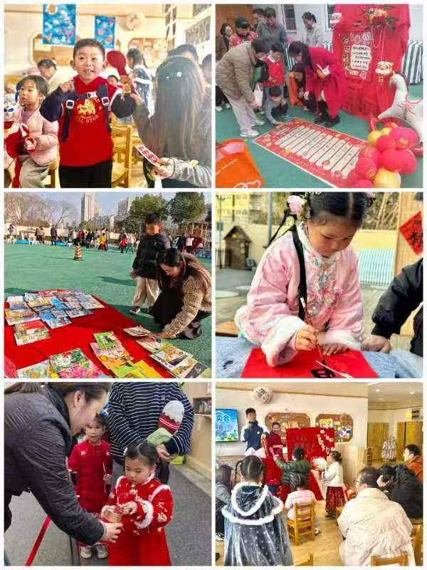 “我想把‘福’字带回家贴在门口!”一位小朋友举着刚晾干的福字兴奋地说。教师们还将春联和福字精心装饰,布置成小型“新春市集”,让孩子们在互动中感受传统文化的魅力。
