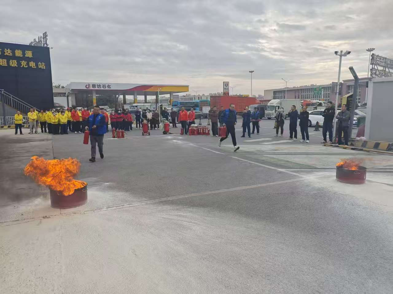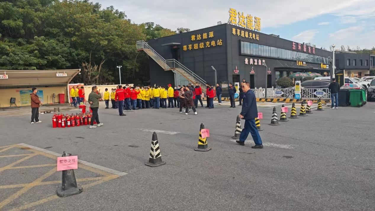 本次活动模拟了加油站区域内可能出现的火情紧急场景。随着模拟险情信号发出,演练正式拉开帷幕。东环加油站工作人员立即启动应急预案,按照预定分工,迅速进行初期火灾扑救、紧急疏散、报警联络以及现场警戒等环节。整个过程指令清晰、行动迅速、配合紧密,充分检验了加油站自身应急预案的科学性和可操作性。