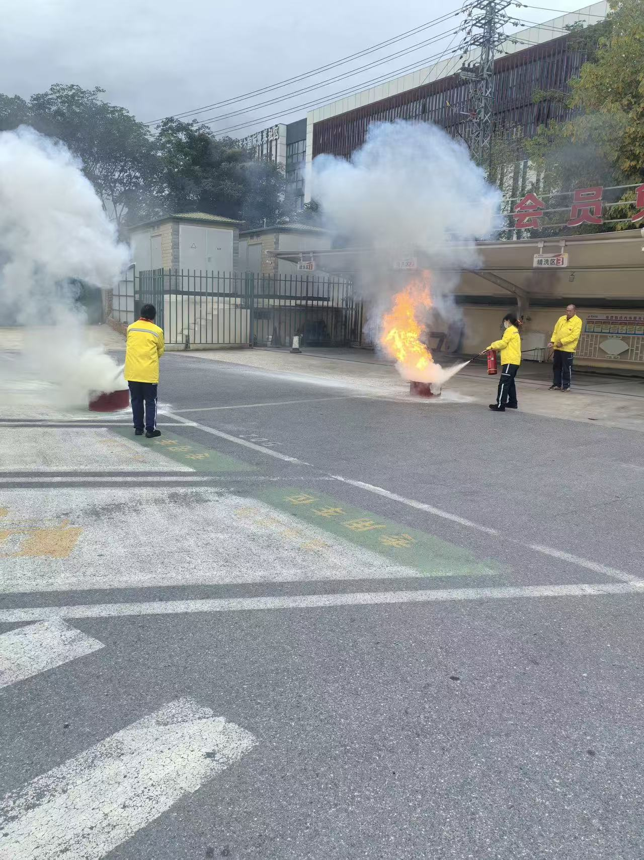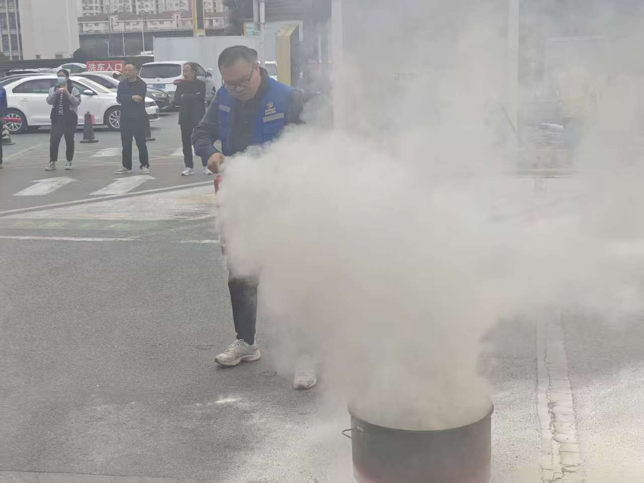在随后的灭火演练中,消防专业人员现场详细讲解并演示了干粉灭火器的正确使用方法,强调了“提、拔、握、压”四个关键步骤以及风向判断、站位选择等要点。在专业人员的指导下,社区工作人员、物业安保人员以及部分踊跃参与的居民代表纷纷上前,亲身体验了如何使用灭火器对模拟火源进行扑灭。通过实际操作,大家不仅掌握了灭火器材的使用技巧,更克服了对火情的恐惧心理。