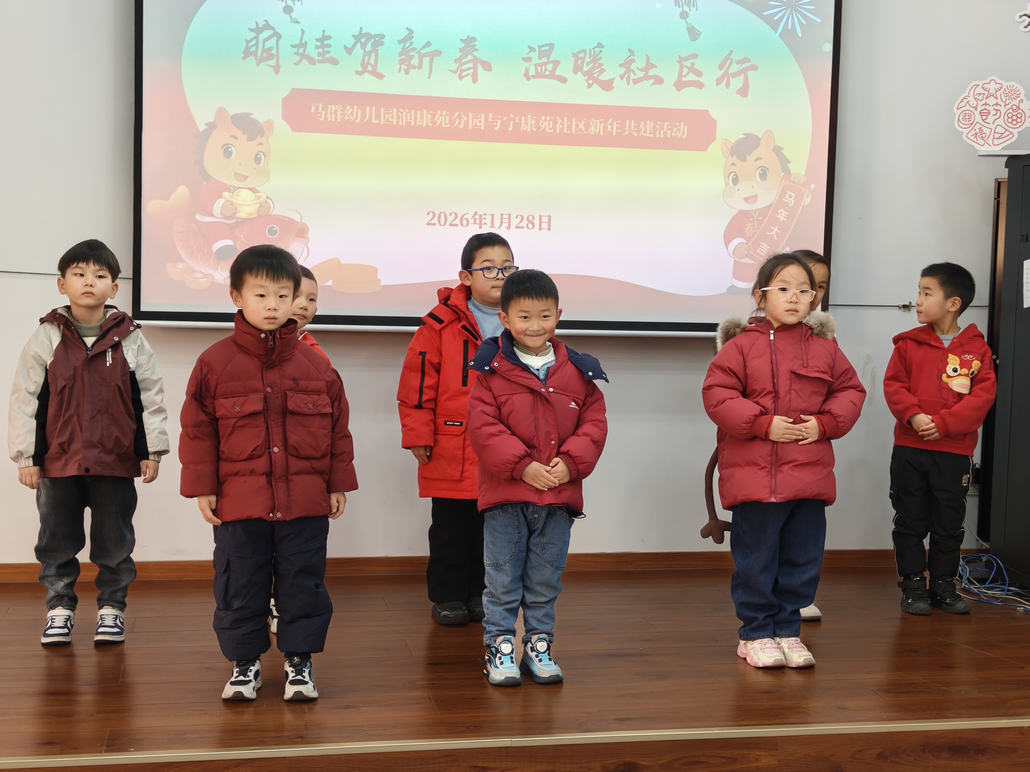 1月28日下午,宁康苑社区三楼活动室内欢声笑语,暖意融融。宁康苑社区与马群幼儿园润康苑分园联合开展的“萌娃贺新春 温暖社区行”新年共建活动在此温情上演。幼儿园的小朋友们走进社区,用纯真的表演与真挚的祝福,为社区居民送去新春的问候,谱写了一曲老少同乐、邻里相亲的温馨乐章。