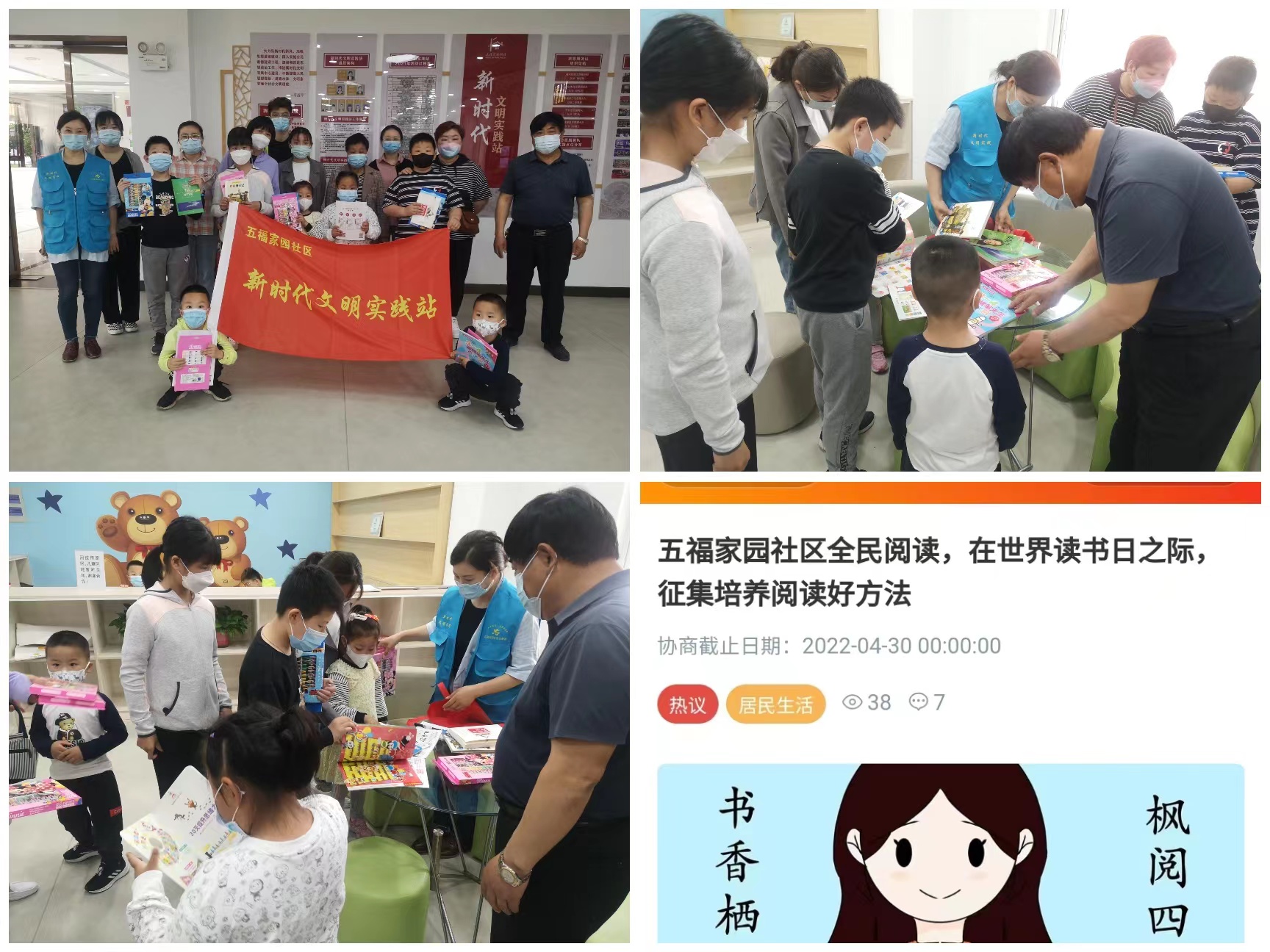 2022年4月23日世界阅读日,为了培养五福家园社区儿童养成良好的阅读习惯,五福家园社区居民学校阅读开展了一场别开生面的阅读打卡活动。