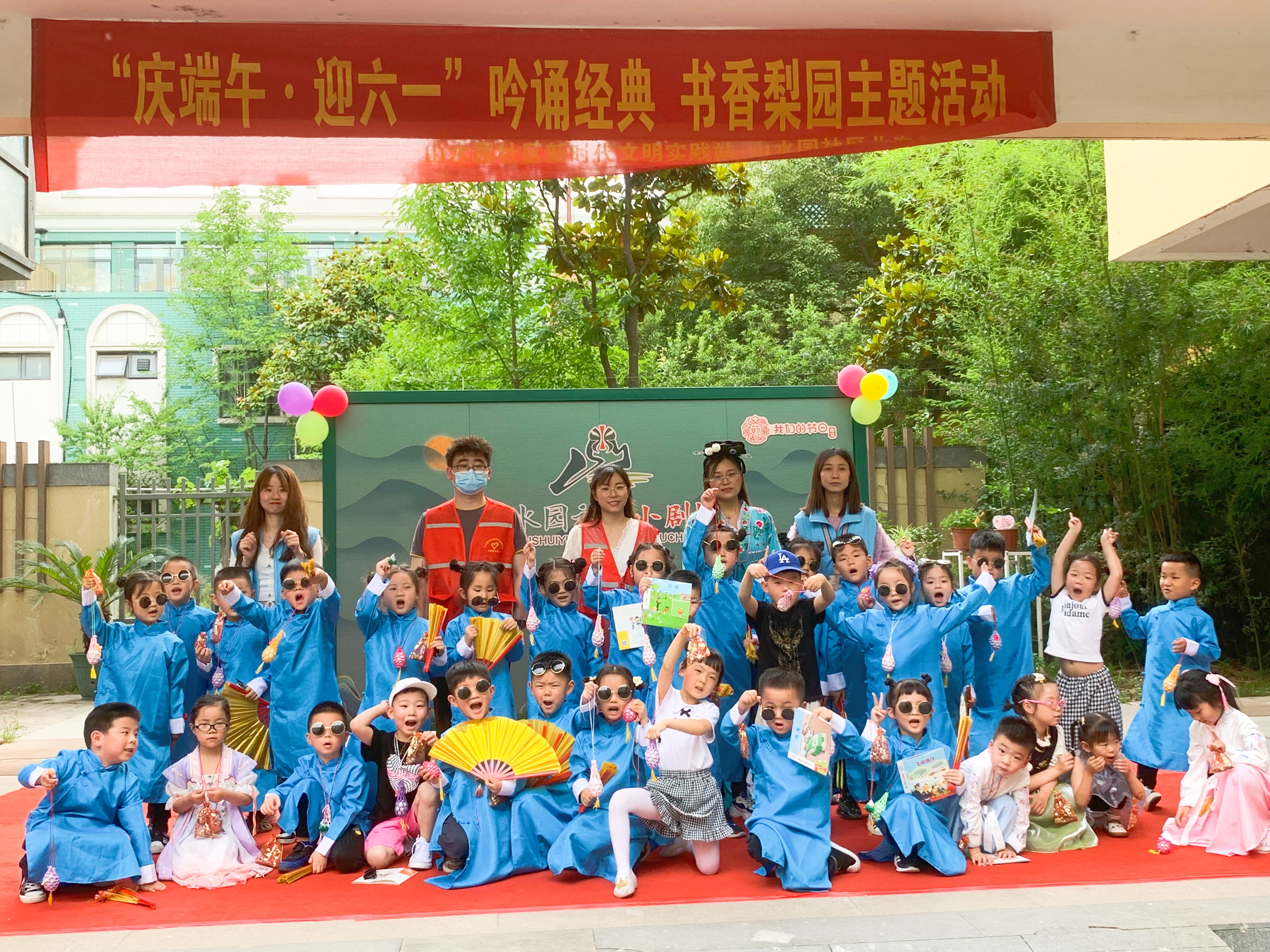 5月31日下午,为了弘扬中华民族传统文化,在“六一”儿童节、端午节到来之际,山水园社区新时代文明实践站以我们的节日为契机,邀请共建单位丁家庄幼儿园迈幼二园和童心社服在山水园社区户外小剧场开展“庆六一迎端午”“吟诵经典,书香梨园”主题活动。