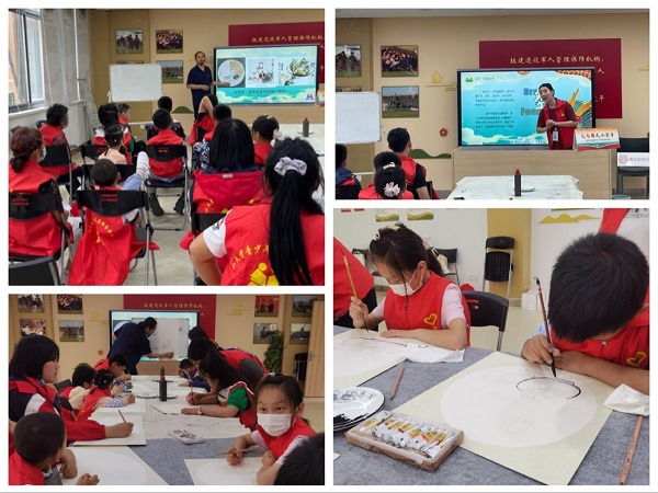 活动一开始,传统文化主讲老师为孩子们分享了端午故事及屈原的爱国精神,粽子的形状棱角分明,象征着屈原的人格棱角分明,不与世俗同流合污……带领大家朗诵、学习跟端午节有关的儿歌和诗词,如边贡《午日观竞渡》、释怀深《偈一百二十首 其四十一》,由儿童们发挥联想,畅谈儿歌和诗词所描绘的画面。接着,国画老师为孩子们讲解绘画的有关技能和知识并分发绘画材料。孩子们根据老师的讲解和自己的想象任选一首诗词或者儿歌,画出诗词中所描述的景象;最后,孩子们互相分享自己画的作品,互相赠送伴手礼,分享喜悦。