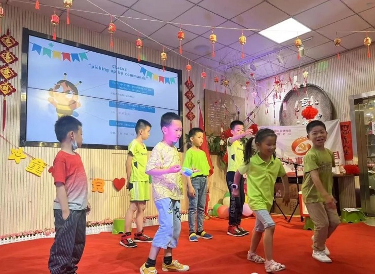 音乐响起,活动在小朋友们欢快的健身操中拉开帷幕,接下来是听力和阅读能力展示、大合唱、做游戏等环节,大家寓教于乐,玩得不亦乐乎!孩子们对这个活动甚是喜欢。一名5岁男孩妈妈坦言,她跟宝贝都十分喜欢这种大家聚在一起的感觉,喜欢热闹的气氛,这个口语角更像是每周的聚会。