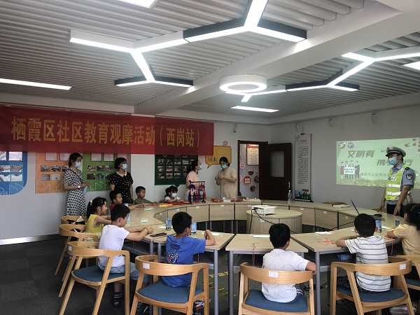 社区民警通过看图片识交通标志、互动问答、学唱交通安全儿歌等活动环节,让小朋友在愉快的活动中感知交通安全的重要性,并布置任务要求小朋友回家后向家长宣传今天安全教育的收获,引导孩子做遵守交通规则的小公民。
