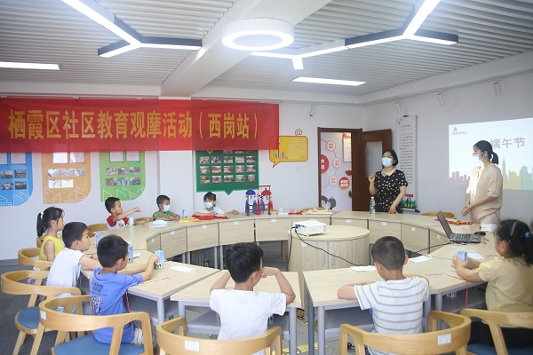 社区教育中心罗琴校长向小朋友讲解了端午节的传统习俗,大部分地区都有腌制咸鸭蛋、包粽子、做绿豆糕、赛龙舟等习俗,以我们南京为例,老南京人讲究门前挂艾叶、给小辈挂编织的五彩线鸭蛋篓子、过节要吃“五红”:南京烤鸭、小龙虾、黄鳝、红苋菜、鸭蛋等等,小朋友在易学亦趣中感知端午节的传统习俗。