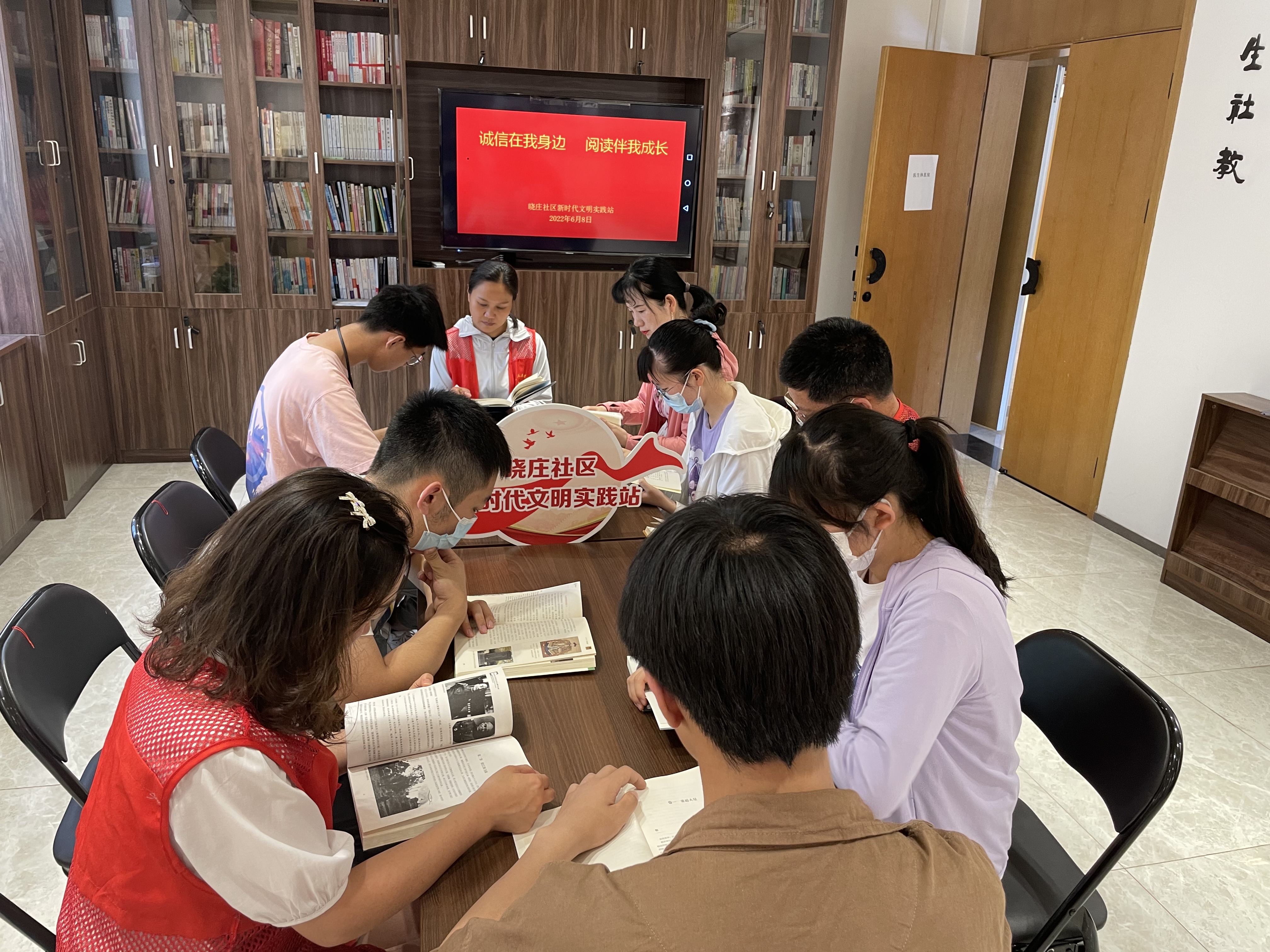 为丰富辖区青少年的文化生活,培养青少年阅读兴趣,增强青少年课外阅读积极性,树立青少年的诚信观念,6月8日下午,晓庄社区居民学校开展以“诚信在我身边,阅读伴我成长”为主题的青少年阅读活动。