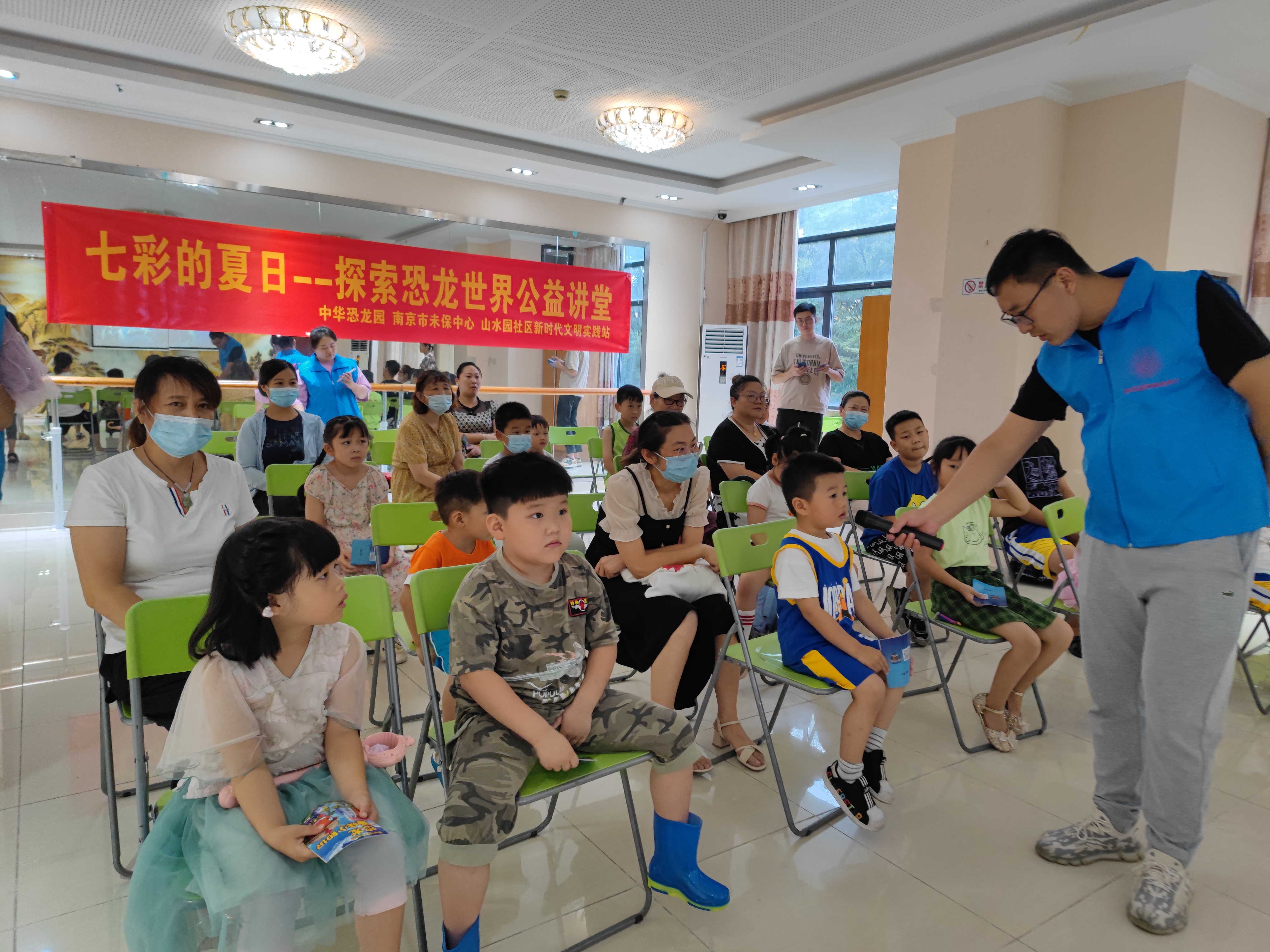 近日,为了宣传科普知识,丰富广大青少年的精神文化生活,山水园社区新时代文明实践站在区未保办和街道民政部门的牵头下,联合常州恐龙园公益科普团举办“七彩的夏日—探索恐龙世界公益讲堂”活动,带领小朋友们和“恐龙”来了一次近距离“接触”。