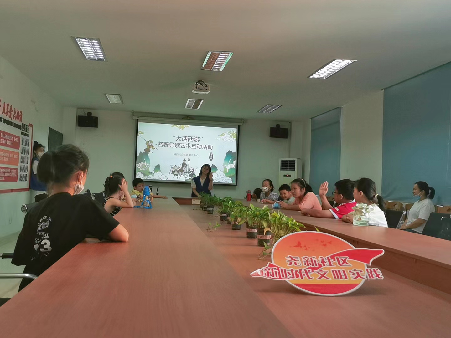 为促进小朋友进一步了解名著,学习名著中的优秀品质,通过艺术创作提升想象力、释放个性。8月9日上午,尧新社区居民学校举办“大话西游”-名著导读艺术互动活动。本次活动主要将《西游记》的内容与现实生活连接起来,并通过游戏更好体验西游精神。