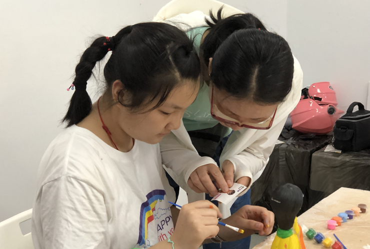 一只只雪白的石膏存钱罐,在小朋友的晕染涂抹下,渐渐变得五彩缤纷、活灵活现。多变的色彩和细处的填充,考验着孩子们的耐心与专注力;而色彩的搭配与轮廓的勾勒,也在不知不觉间唤醒着孩子们的艺术细胞。在家人的陪伴与协助下,小朋友们挥舞画笔,在劳动中感受美学教育,尽享亲情温暖,收获自制作品。虽然一坐就是一个多小时,笔尖流转配合目不转睛,着实有些辛苦,但这份小小的坚持,让孩子们体会到努力终会开花结果。