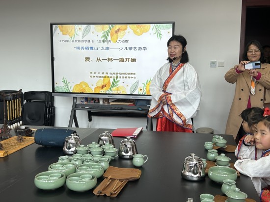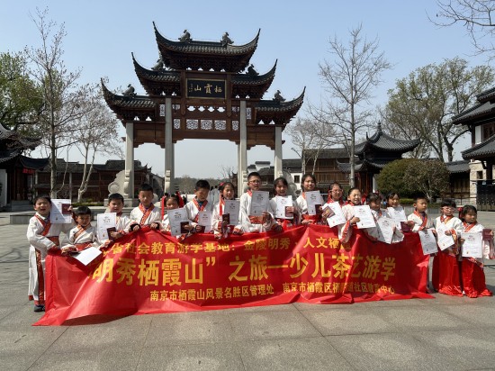 “金陵明秀,人文栖霞”江苏省社会教育游学基地系列活动“明秀栖霞山”之旅——少儿茶艺游学于2023年3月26日上午举行,本次活动由栖霞街道社区教育中心与南京市栖霞山风景名胜区管理处联合主办。