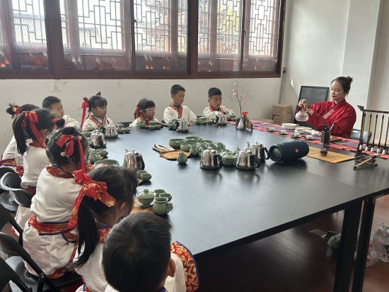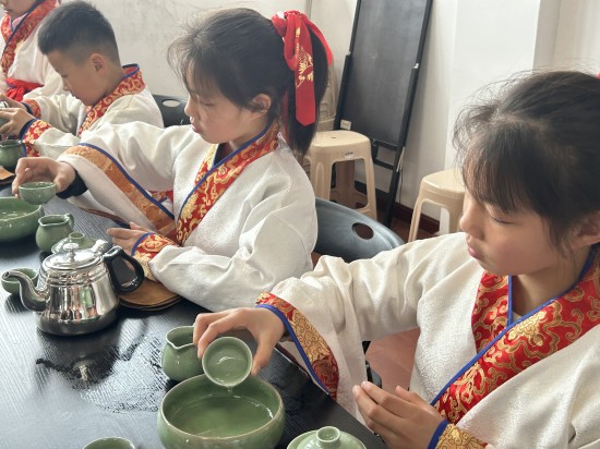 一节少儿茶艺课,一身国学汉服,带领孩子们感知中国传统文化魅力的同时,更是将“礼”这一传统美德带入每组家庭。