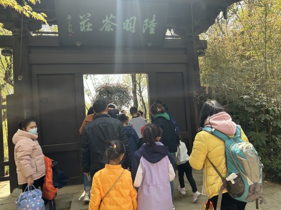 陆羽茶庄是一栋四层仿唐建筑,屋顶出檐平缓,严整开朗,华美而不纤巧,舒展而不张扬,古朴却不失活力。在茶庄前倾听茶艺老师的介绍,对陆羽茶圣其人及费心撰写的《茶经》又多了一些了解,感叹先人的伟大,赞叹茶圣对中国茶文化作出的贡献。
