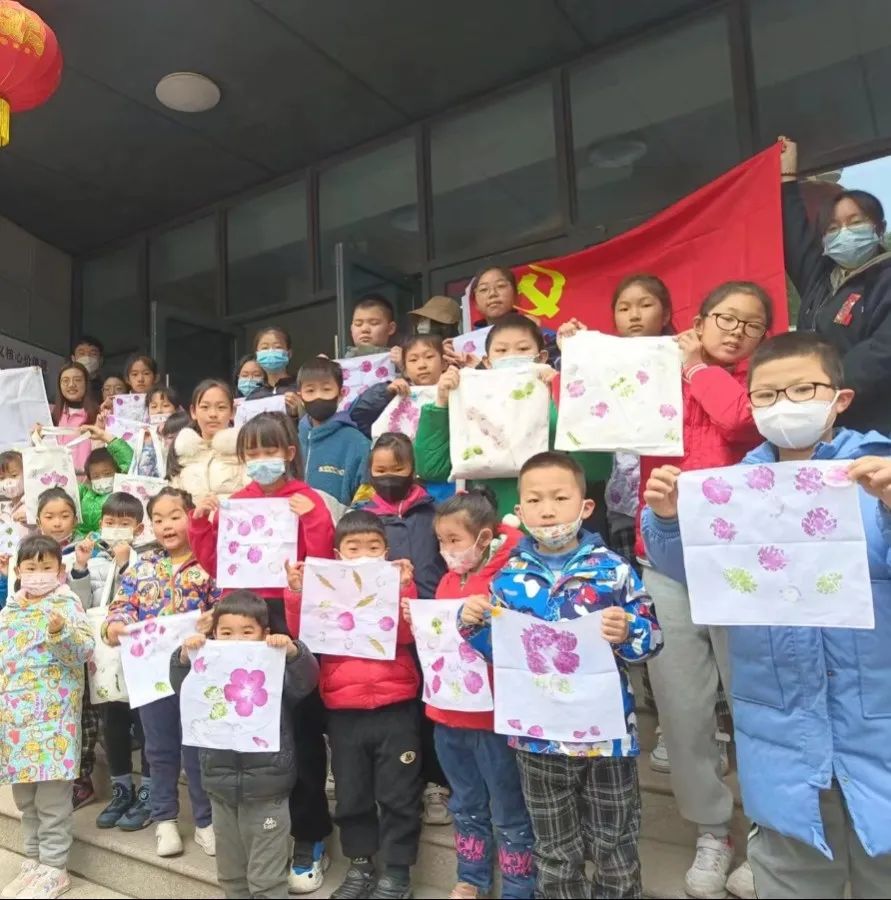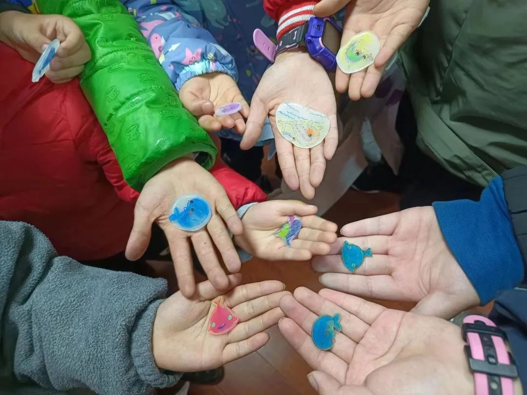 随后在动手制作环节,微笑江豚热缩片和植物印染深受孩子们的喜欢。为了呼吁大家共同保护江豚,爱护环境,党员志愿者带领小朋友们制作出一只只俏皮的江豚,形态各异,可爱极了。最受欢迎的是植物印染活动,小朋友们挑选自己喜欢的花叶,动手制作属于自己独一无二的春之包,大家脑洞大开,各显神通,各种各样的形状以及各种各样的创意,让小朋友们了解了植物颜色秘密和印染这个传统手艺。