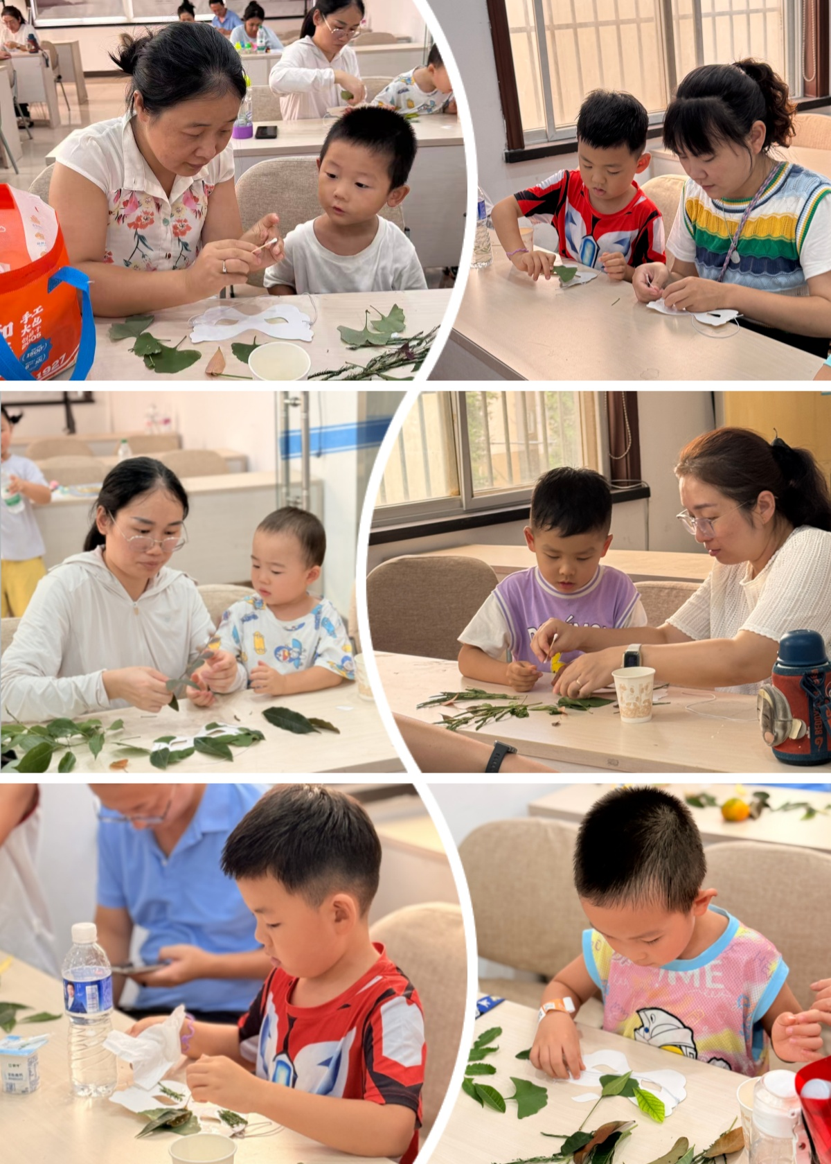 制作环节中,小朋友们的热情如烈火般燃烧。大家小心翼翼地挑选着树叶,仔细地搭配着不同的色彩组合,仿佛在精心绘制一幅美丽的画卷;工作人员们则在一旁耐心地观察着,适时地为孩子们提供帮助,解答他们在制作过程中遇到的各种问题,现场氛围活跃而温馨。