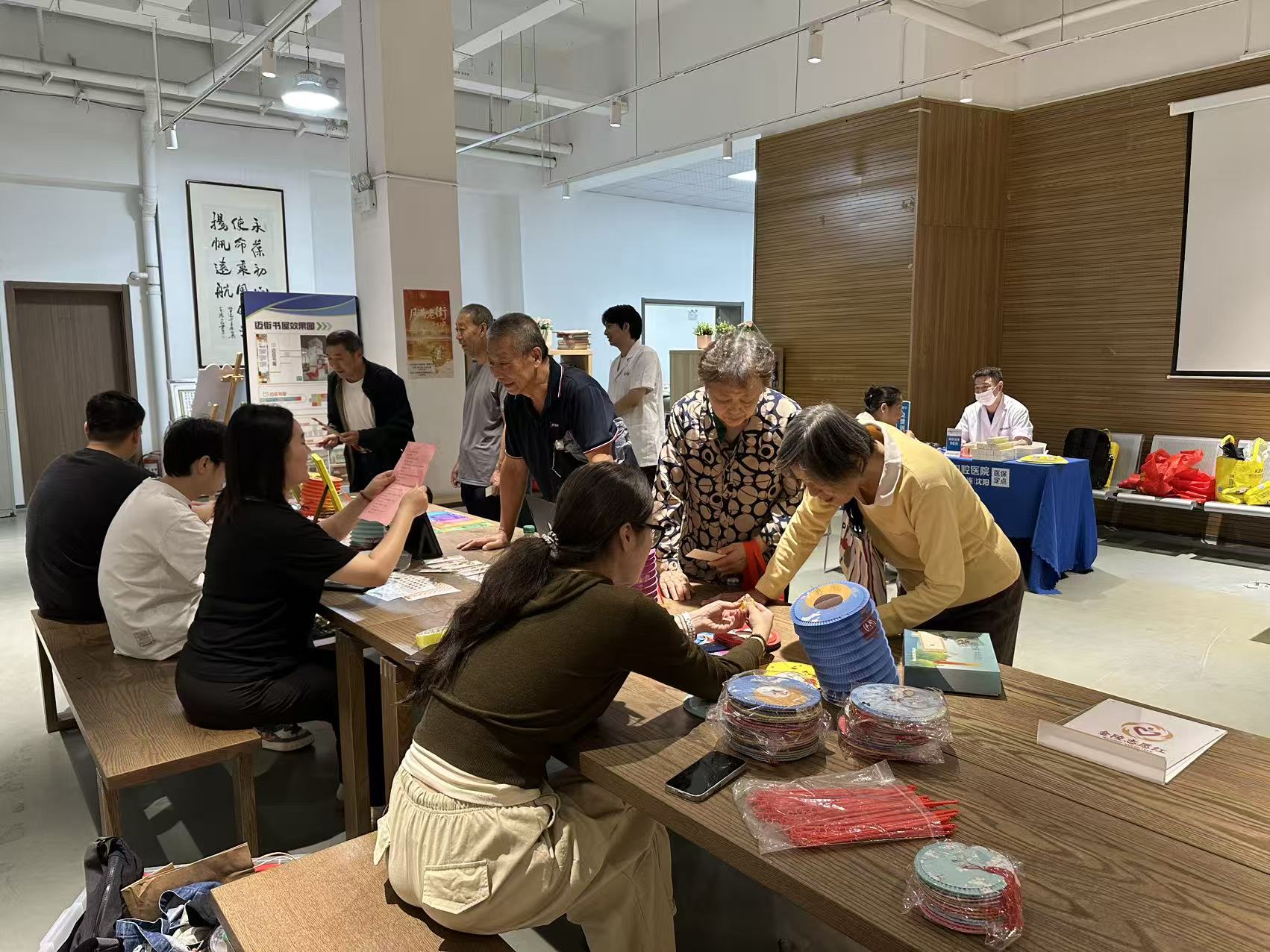 “左手扶着竹骨,右手慢慢弯,力道要匀,不然竹篾会断哩!”花灯老师的声音随着手上的动作一起,缓缓传来,身旁围坐的街坊邻居们也是听得认真,映衬着桌上散落的彩纸、浆糊、灯穗,满是热闹的节日氛围。