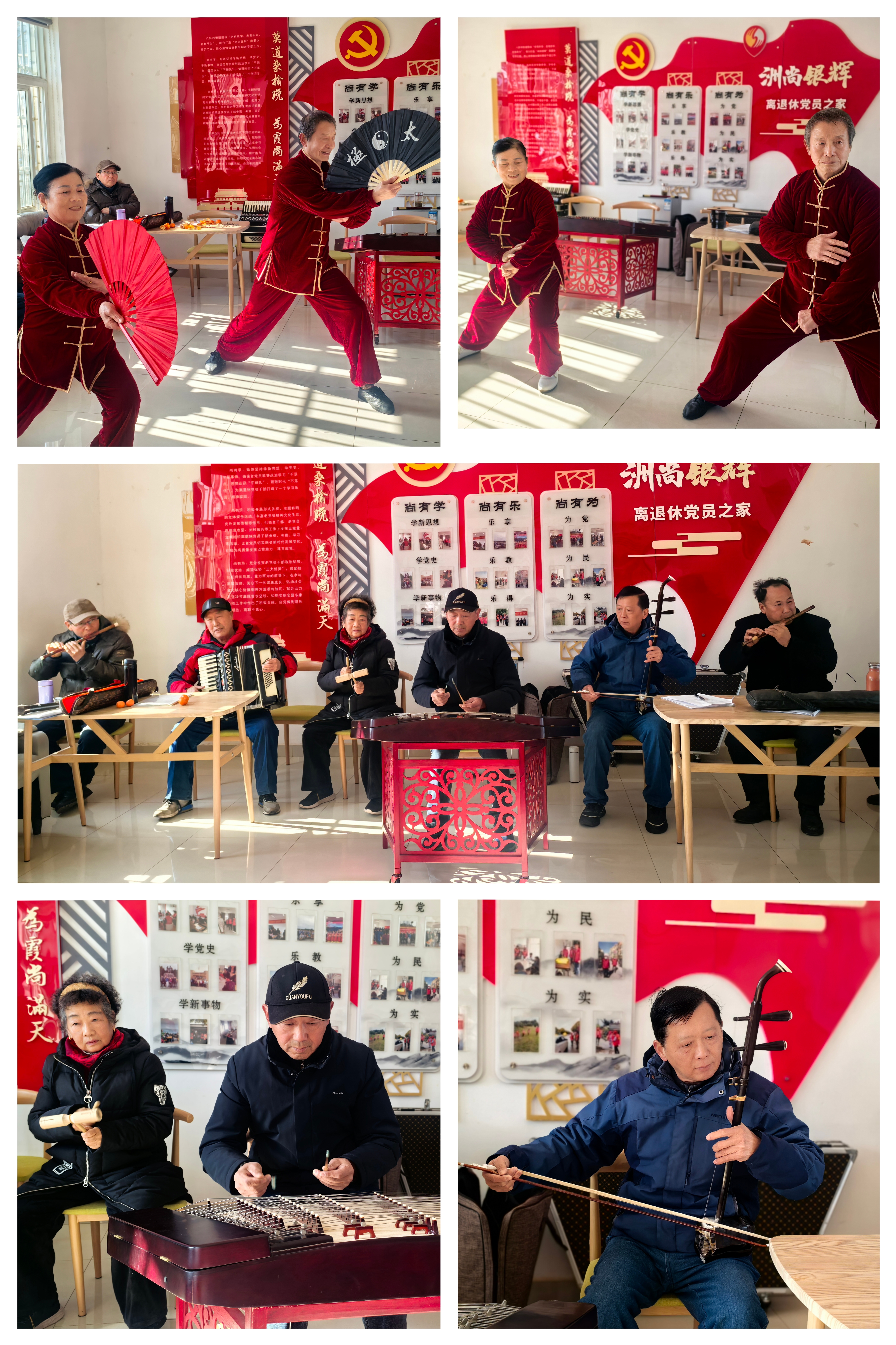 熬粥环节暖意融融,工作人员按传统配方慢火熬煮,鲜香气息很快弥漫全场。居民们围在桌边交流熬粥秘诀、分享腊八习俗,氛围融洽。与此同时,文艺表演精彩启幕:老年大学器乐队奏响《众手浇开幸福花》、《马兰花》等经典曲目,旋律欢快引得掌声不断;太极队队员动作舒展刚柔并济,展现出饱满的精神风貌,让大家感受传统养生文化魅力。
